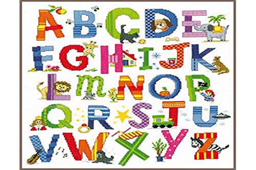 Vervaco Point De Croix Compté Kit Tableau Complet Set ABC AVEC DES ANIMAUX De Broderie Loisir Créatif Maison Decoration Cadeau DIY ca. 33 x 39 cm Counted Cross Stitch Embroidery