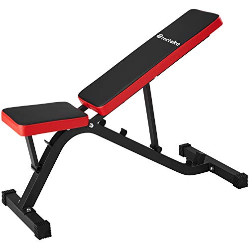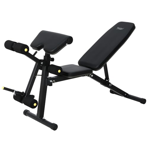 HOMCOM Banc de musculation pliable inclinable, banc réglable pour le développé couché, le curl biceps, la musculation du dos et des abdominaux, avec extenseur des jambes, acier, noir rouge