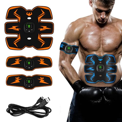 Ficugxd powerfit Pack d'électrostimulation pour Abdos, Bras et Jambes,electrostimulateur Bras,Ceinture EMS Portable pour Entraînement Abdominal, Modes Multiples et Intensité Réglable-A