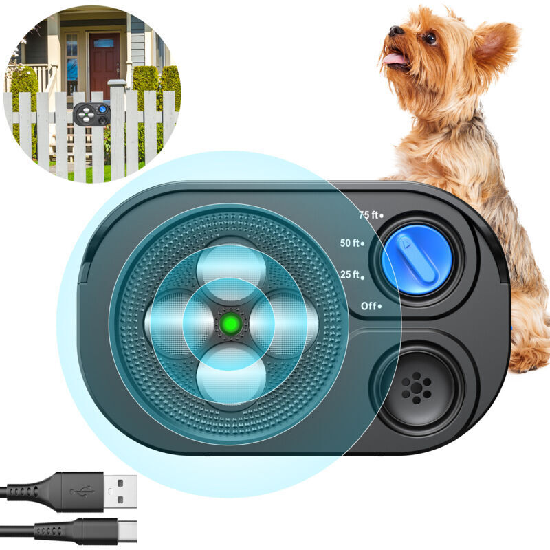 Anti Aboiement Chien à Ultrason Longue Portée Voisin 33 Pieds Rechargeable Détection Automatique pour Petit/Moyen/Gros Chien