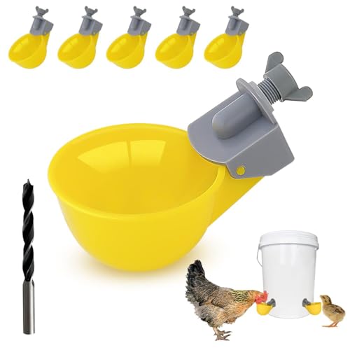 SacJkt 6 Pièces Abreuvoir Poules avec Perceuse, Mangeoire a Poule, Abreuvoir Automatique Poussin Kit, Abreuvoir Poule Automatique pour Poussins Cailles Canards Bird (Jaune)