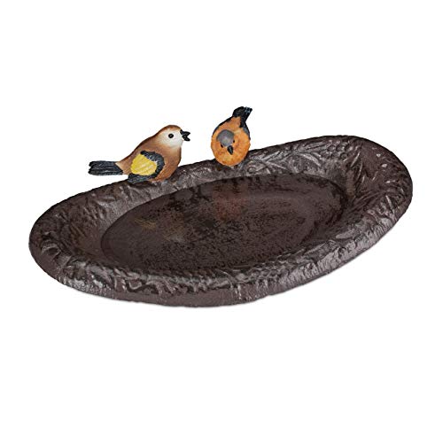 Relaxdays Abreuvoir en Fonte illustré avec oiseaudécoration jardinmangeoire Oiseau Sauvage 24 cm de Large Brun, Marron