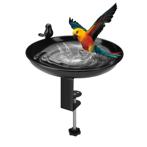 21.3 CM Réglable Baignoire Oiseaux Bol Décoration, Métal Abreuvoir Oiseaux Exterieur BalconJardin Balustrade Yard Clôture Eau Alimentateur avec Détachable Pince (Style 1)