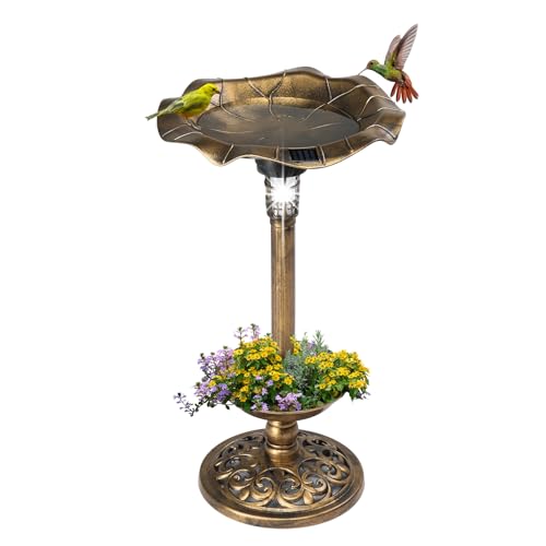 LEADZM Abreuvoir Oiseaux Exterieur avec 1 Lampes à Energie Solaire - Mangeoire Oiseaux Extérieur Solaire, mangeoire pour Jardins et terrasses extérieurs, 44 x 44 x 76 cm, Bronze