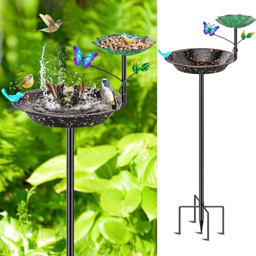 Bain d'oiseaux pour Jardin, Abreuvoir Oiseaux Exterieur sur Pied, Station d'alimentation avec Piquet en Métal Robuste, for Pond Orwatching Balcony Farmhouse Backyard Patio