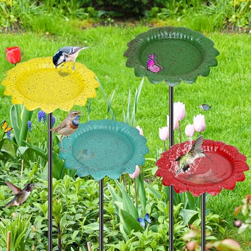 Bain d'oiseaux Abreuvoir Exterieur, Mangeoire Oiseaux Décoration pour Jardin, Bains pour Oiseaux Sauvages, métallique en Fonte (Rouge Jaune Bleu Vert)