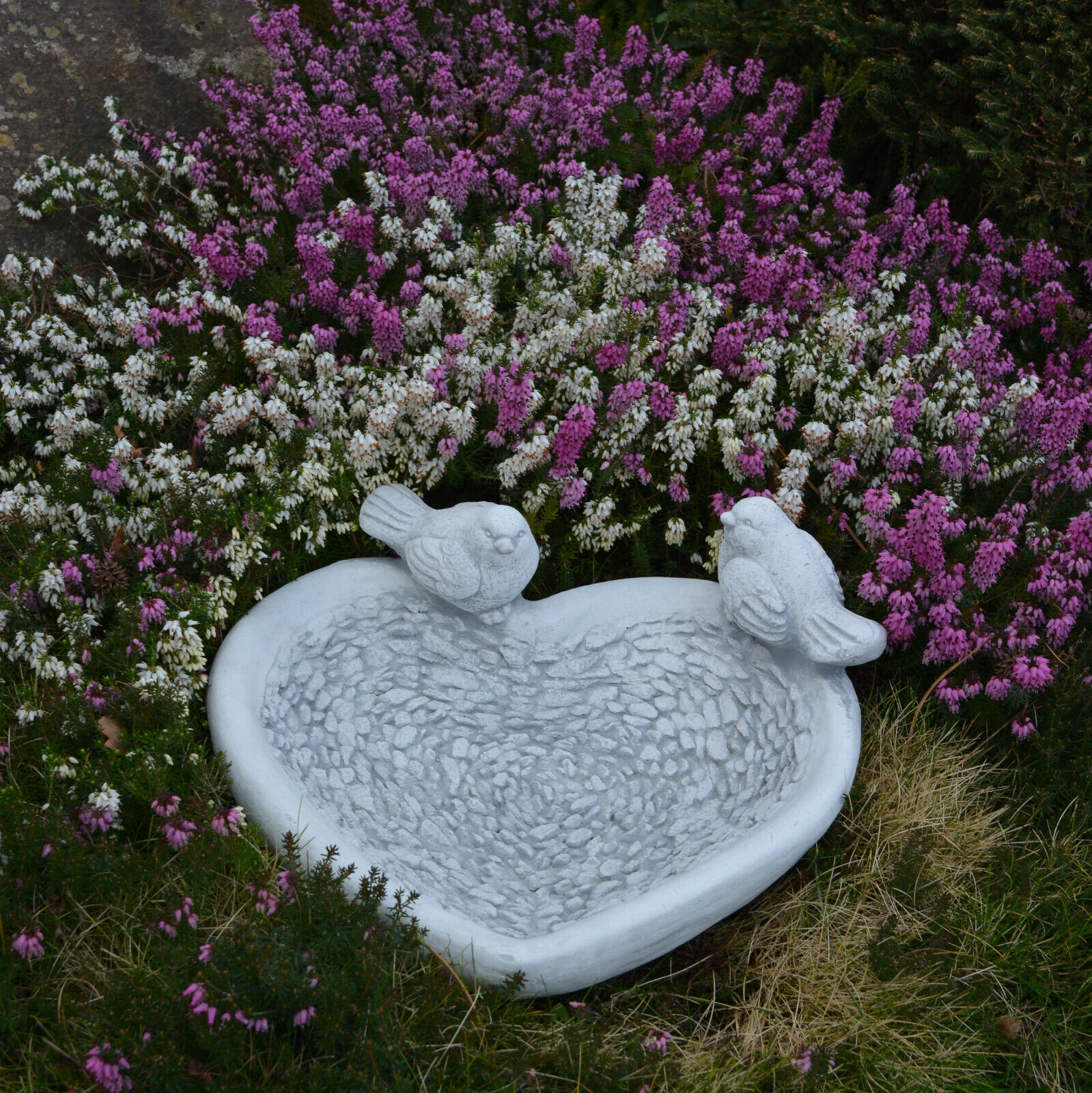 Bol à boire coeur oiseaux abreuvoir oiseaux figurine en pierre 15 cm 8 kg bét...