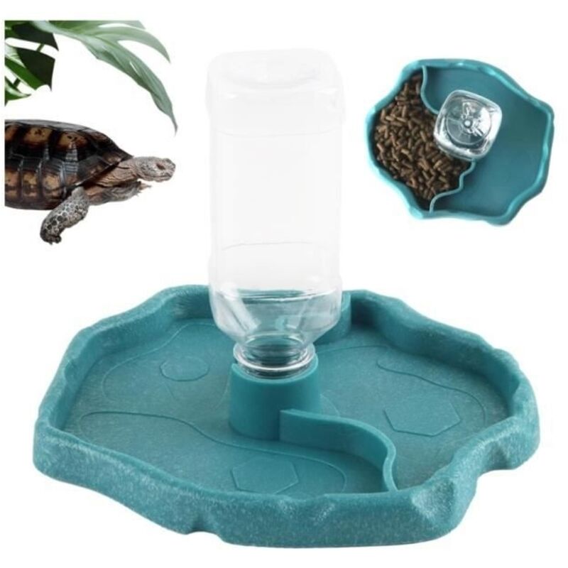 geugecy Distributeur d'eau pour Reptile, Reptiles, Abreuvoir Tortue, Mangeoire Gamelle Tortue Terrestre Distributeur 2 en 1 Nourriture - Distributeurs Nourriture Automatique Réservoir d'eau