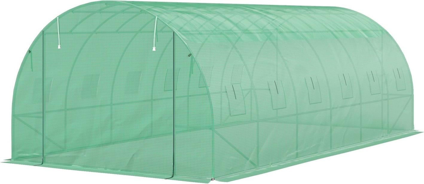 Serre en film plastique d'environ 6 x 3 x 2 m avec 12 fenêtres, porte roulante, parois latérales enroulables, tunnel en film plastique résistant aux UV, abri pour tomates résistant à l'hiver avec ancrage, vert Aosom