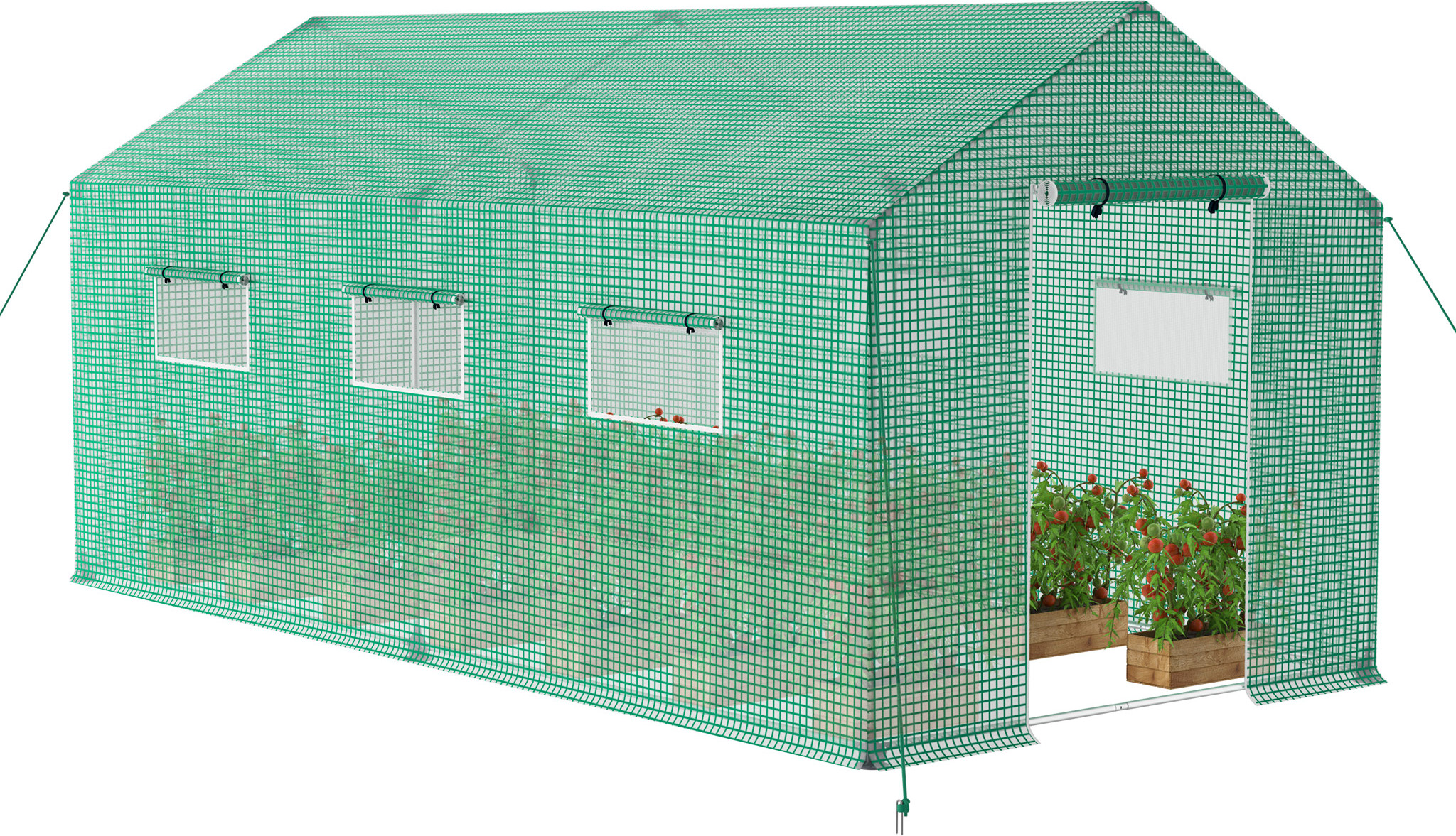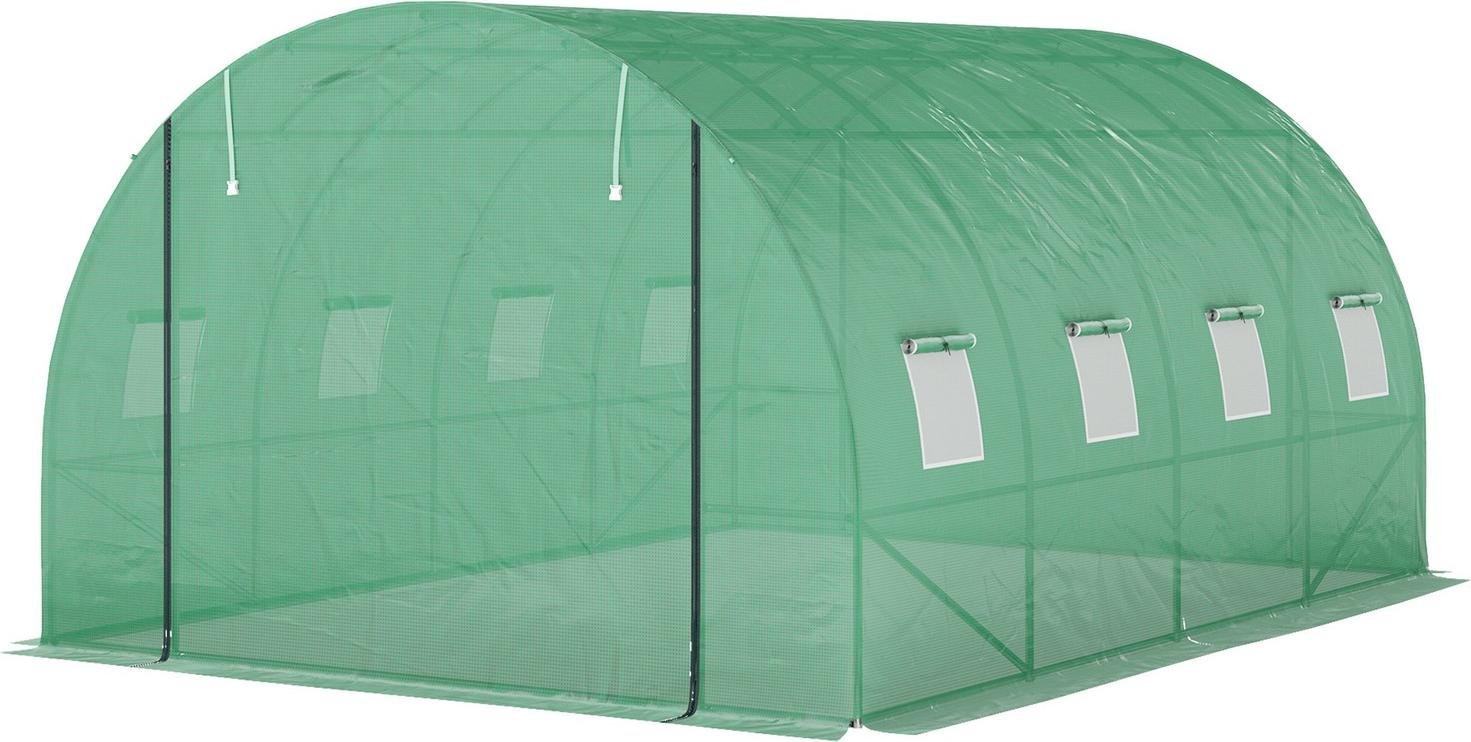 Serre en film plastique d'environ 4 x 3 x 2 m avec 8 fenêtres, porte roulante, parois latérales enroulables, tunnel en film plastique résistant aux UV, abri pour tomates résistant à l'hiver avec ancrage, vert Aosom