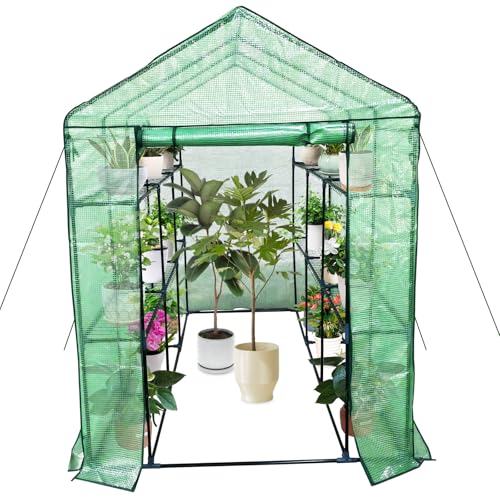 GarveeHome Serre en Film Plastique - Abri de Jardin avec étagère - Serre à tomates - en Film Plastique - pour tomates, légumes, Fruits, Fleurs