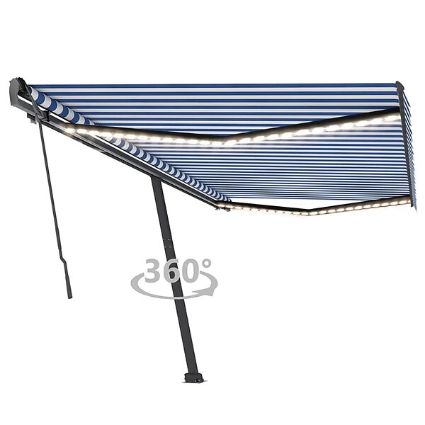 vidaXL Auvent rétractable manuellement avec LED 350x250 cm bleu et blanc 3069721