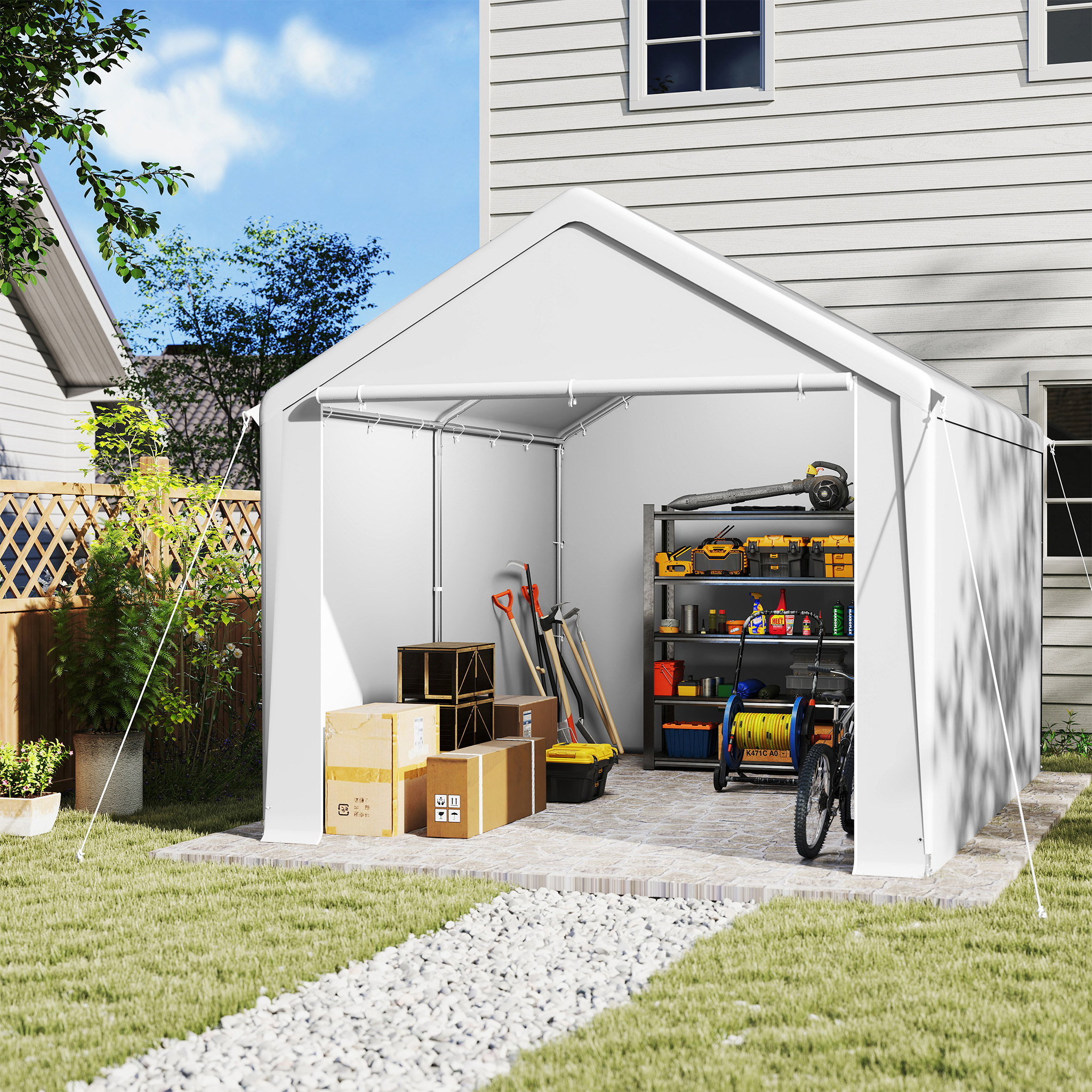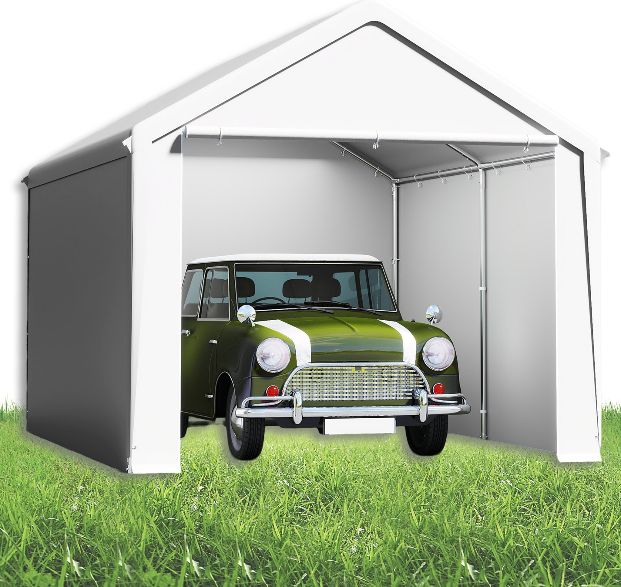 LARS360 Carport & tente de stockage blancs de 3x4m - Garage de tente résistant aux intempéries avec toit en PE résistant aux UV pour voiture, SUV, camion & bateau - Abri de garage pour jardin & cour
