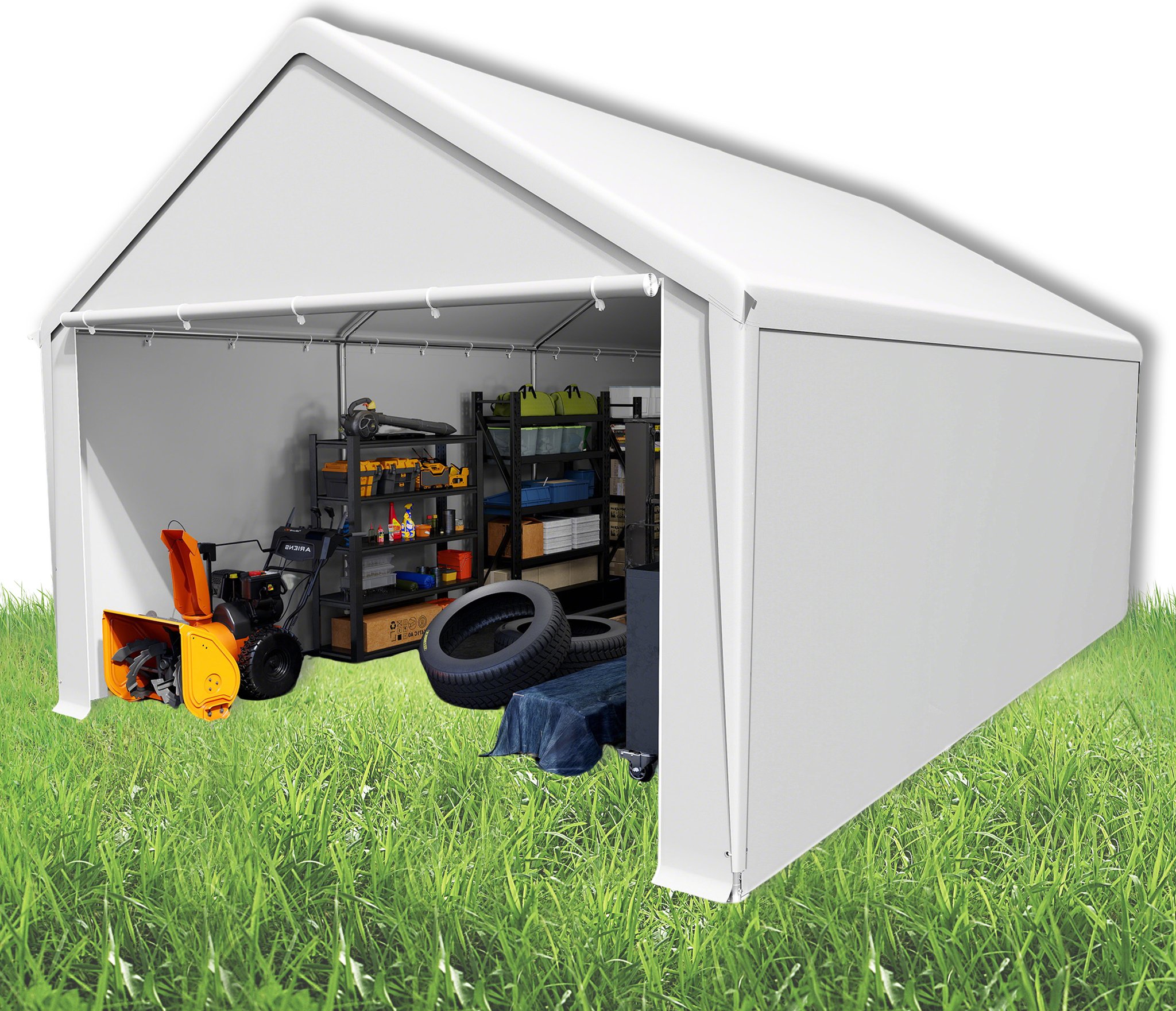 LARS360 Tente de stockage 4×6 m - Tente pour outils résistante à l'hiver avec toit & parois latérales amovibles - résistante aux UV - Abri de jardin Carport Tente de pâturage - Blanc
