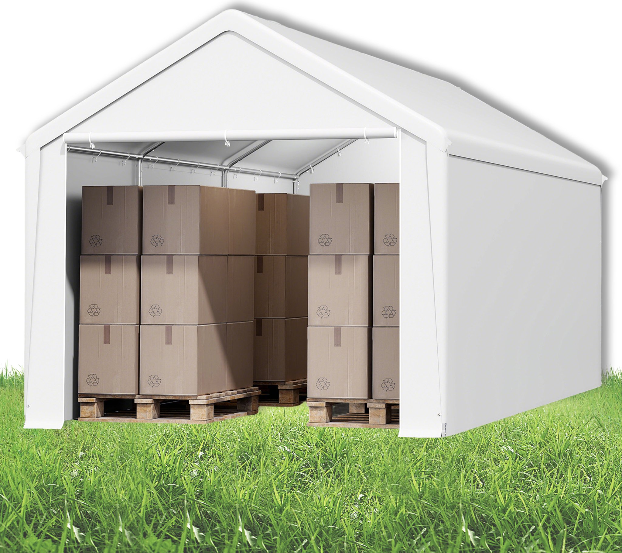 LARS360 Tente de stockage 4×8 m - Tente pour outils résistante à l'hiver avec toit & parois latérales amovibles - résistante aux UV - Abri de jardin Carport Tente de pâturage - Blanc