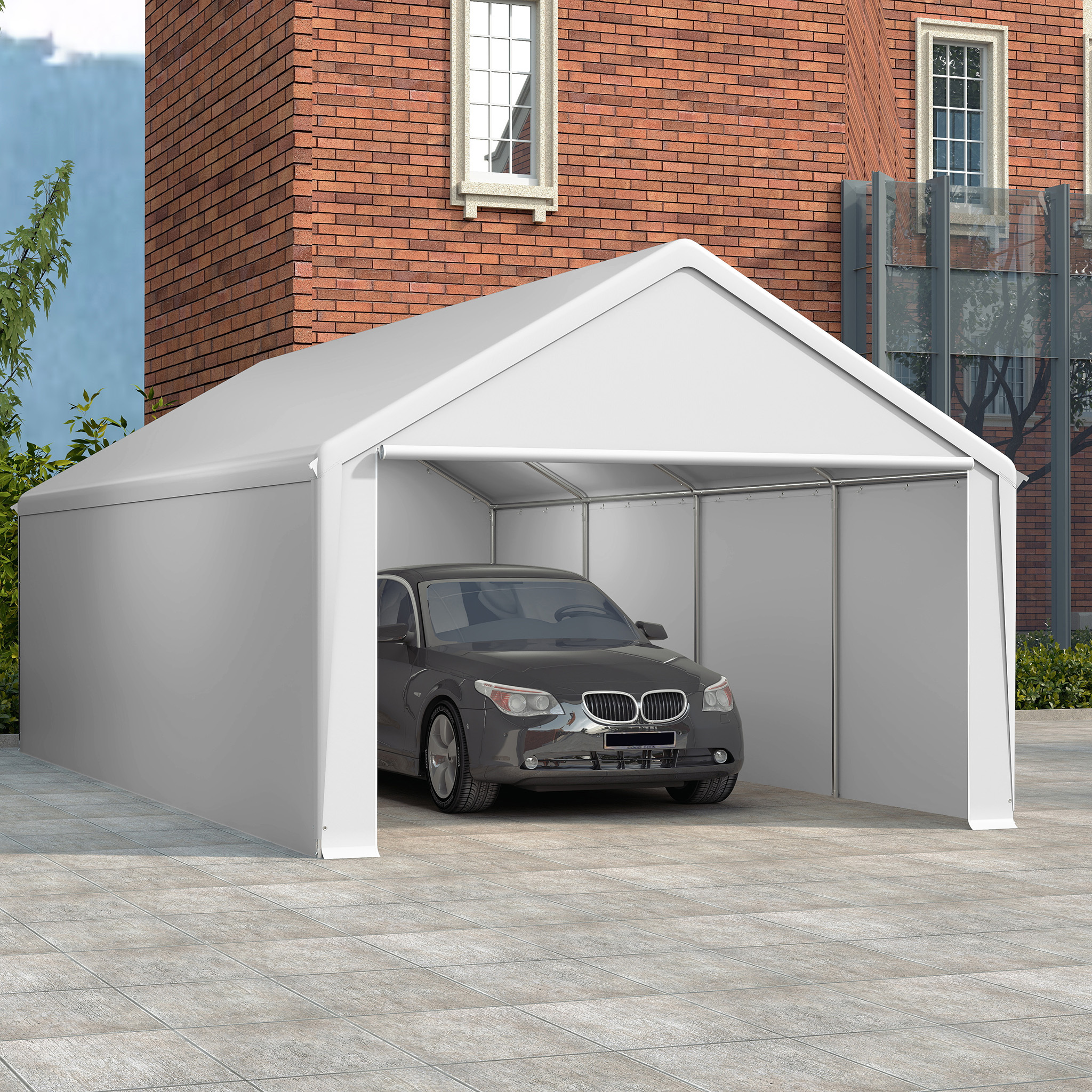 LARS360 Carport & tente de stockage 4x8m blanc - Garage de tente résistant aux intempéries avec toit en PE résistant aux UV pour voiture, SUV, camion & bateau - Abri de garage pour jardin & cour