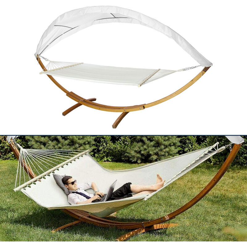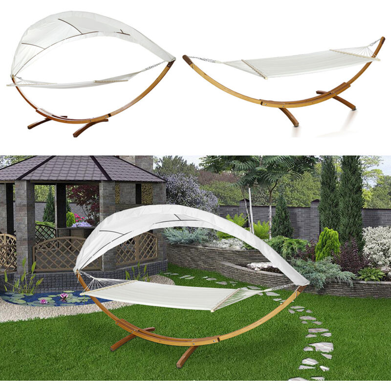 TolleTour Hamac avec support en bois massif 415 × 150 × 210 cm – Hamac double avec auvent – Chaise longue de jardin – Jusqu’à 200 kg