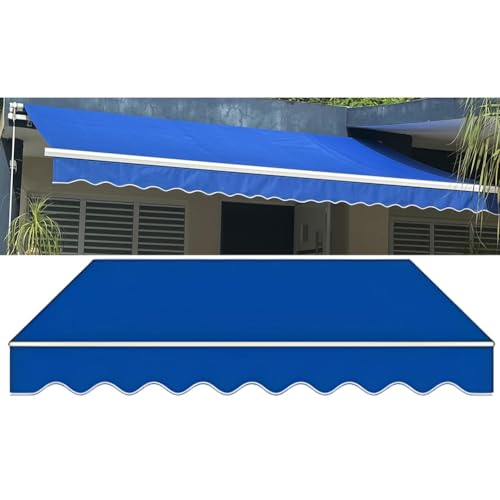 Extérieur Patio Jardin Abri Tissu De Rechange Toile pour Store Banne Rétractable Manuel Toile D'Auvent Polyester aux Cours, porches et fenêtre Bleu Red Marron(Blue,6x3.0m)