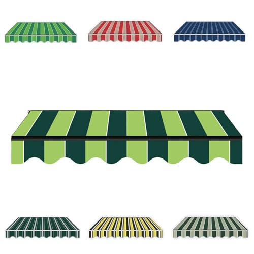 Extérieur Patio Jardin Abri Tissu De Rechange Toile pour Store Banne Rétractable Manuel Toile D'Auvent Polyester aux Cours, porches et fenêtre Bleu Red Marron(Green Stripe,3x2.5m)