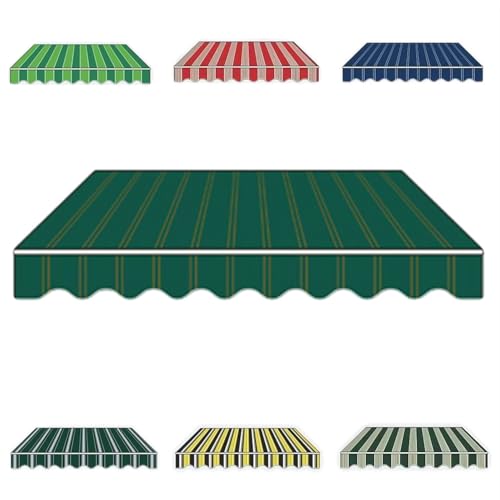 Extérieur Patio Jardin Abri Tissu De Rechange Toile pour Store Banne Rétractable Manuel Toile D'Auvent Polyester aux Cours, porches et fenêtre Bleu Red Marron(Dark Green Stripe,4x3.5m)