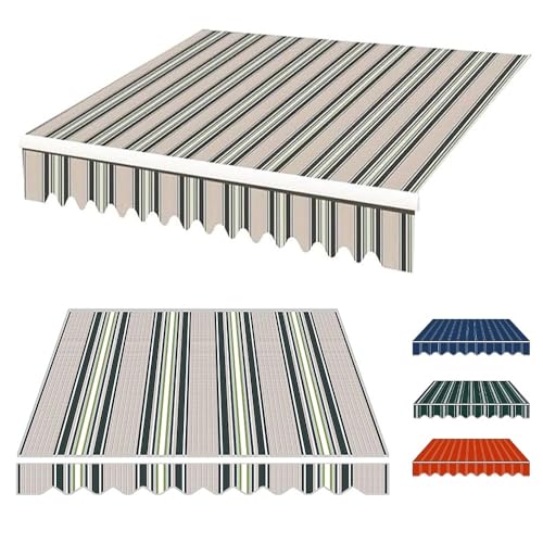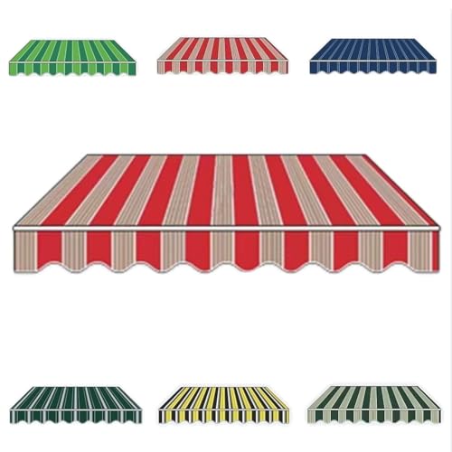 Extérieur Patio Jardin Abri Tissu De Rechange Toile pour Store Banne Rétractable Manuel Toile D'Auvent Polyester aux Cours, porches et fenêtre Bleu Red Marron(Green Stripe,4.6x3.4m)