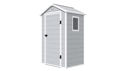 Duramax EverMore 4 x 6 (1.99 m²) Abri de jardin en plastique, solution de stockage extérieur ignifuge et tout temps, avec plancher en plastique, abri en vinyle sans entretien, Adobe & Grey