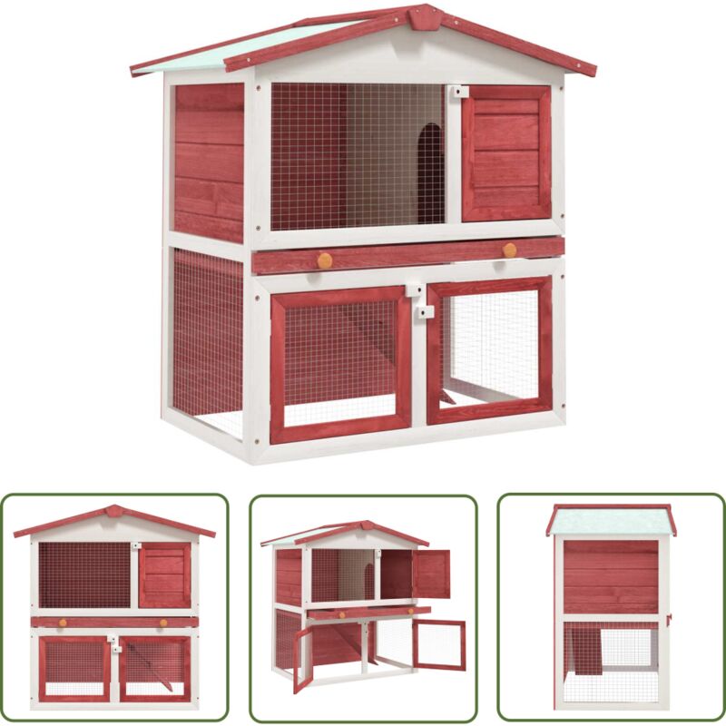 Clapier d'extérieur 3 portes Rouge Bois - Cage à Lapin - Clapier Extérieur - Abri Animal - Accessoires Petit Animal - Lapin - The Living Store