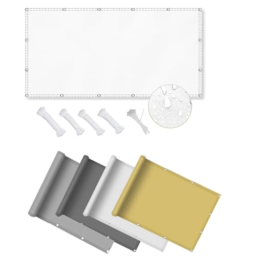 DSRDRFG Voile d'ombrage Imperméable Rectangulaire 0.8x4.8M Cache Brise Balcon pour Jardin Exterior, Piscine, Balcon, Terrasses, Serre, Abri Voiture avec Oeillets et Cordons, Blanc