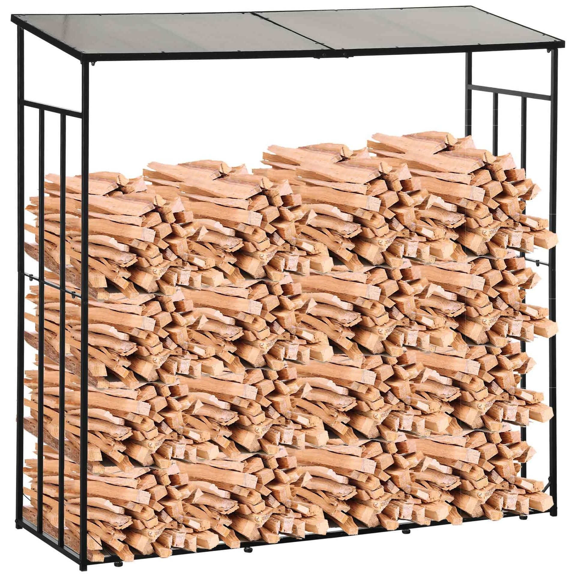 Outsunny Abri-bûches 2,3 m³, support de rangement du bois de chauffage, capacité de stockage du bois de chauffage 2100 kg, pour l'extérieur, en métal et polycarbonate, noir