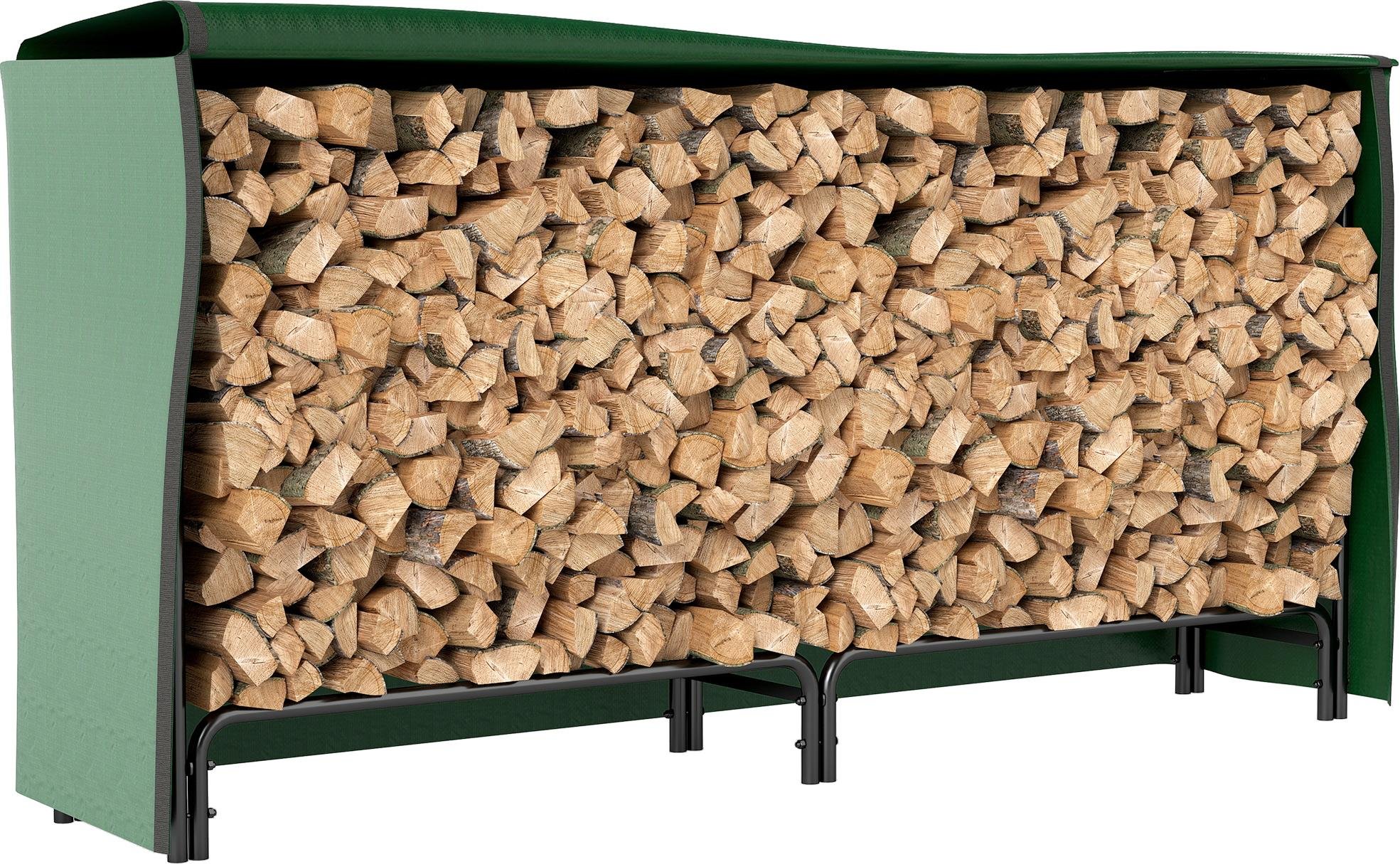 Mokuyary Abri de bûches en acier galvanisé vert 30 x 92 x 153 cm Support de rangement en bois pour intérieur et extérieur pour jardin, débarras, porches, cheminées