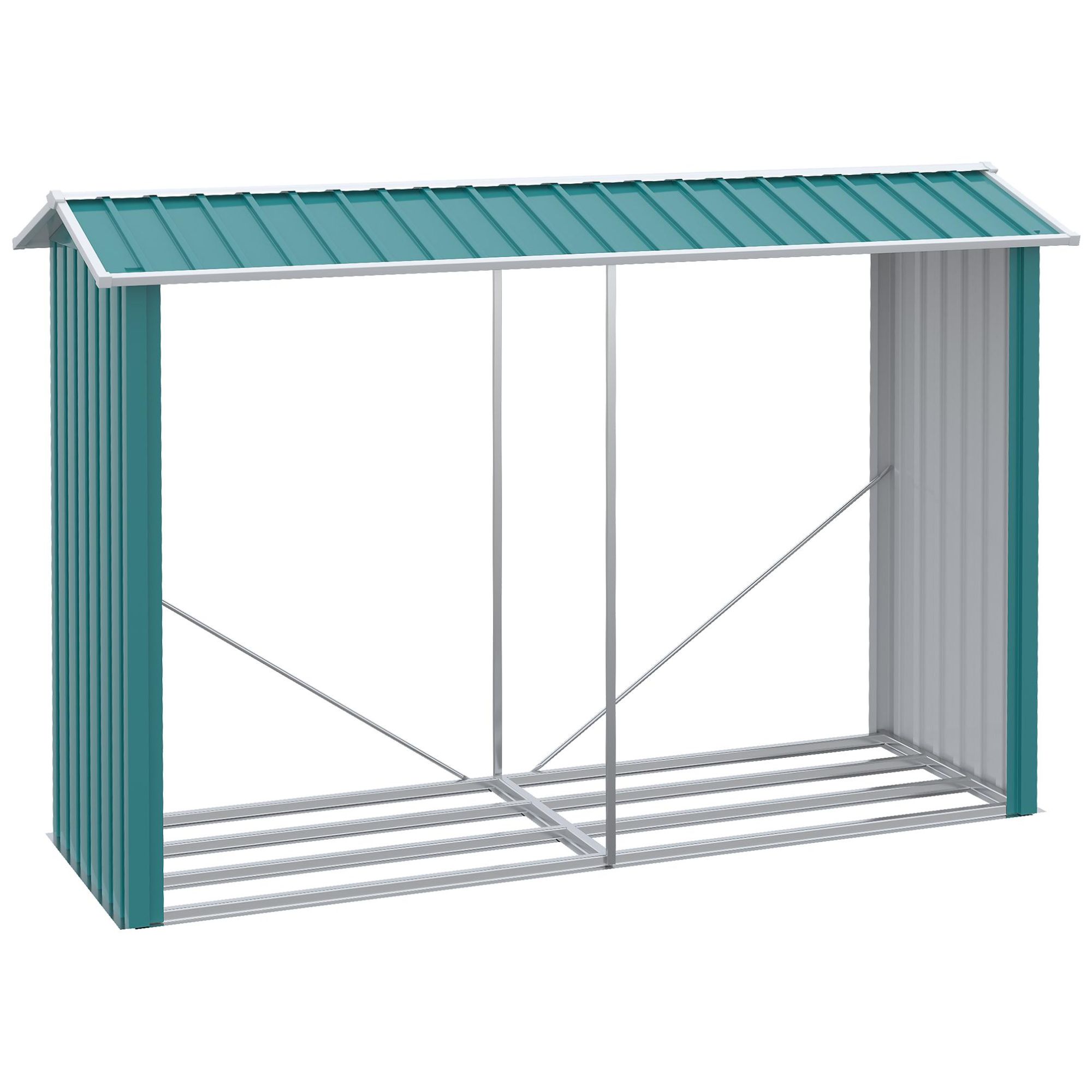 Abri bûches de stockage pour bois de chauffage - 240L x 86l x 160H cm - tôle acier galvanisé vert