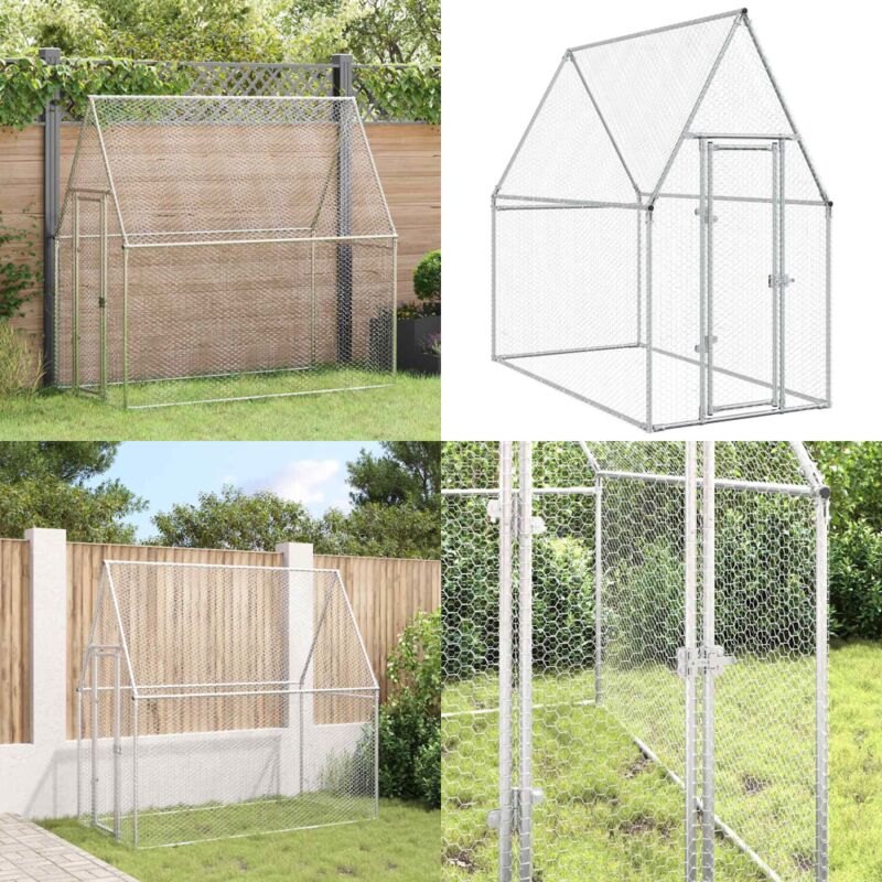 Cage pour poules argenté 200x100x190 cm acier galvanisé - Poulailler - Abri Pour Animaux - Cage Pour Poules - Poule - Canard - Home & Living