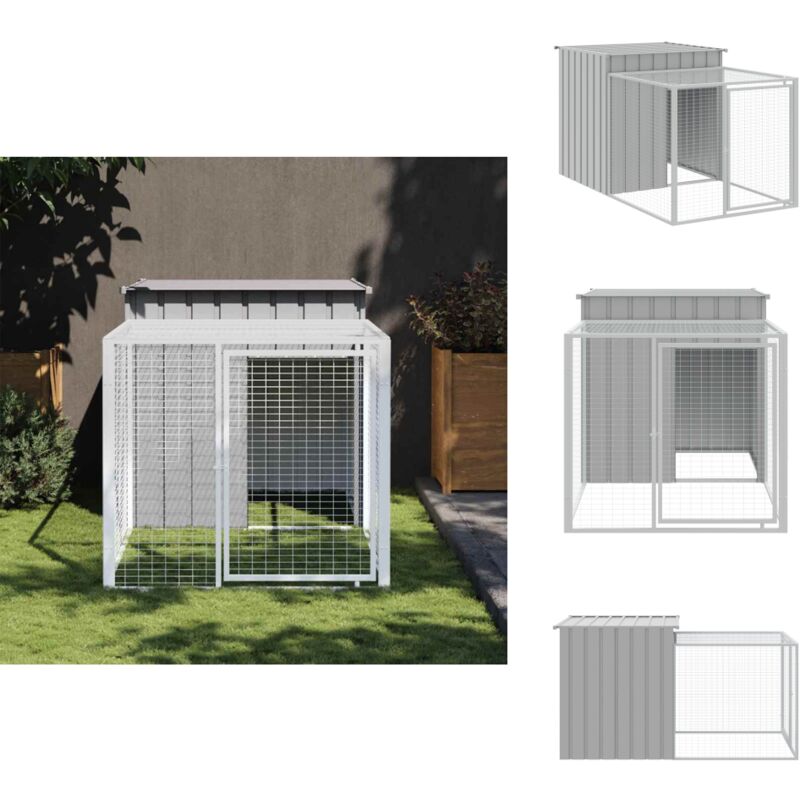 Poulailler avec cour gris clair 110x201x110 cm acier galvanisé - Poulailler - Cage à Poule - Abri Pour Poulet - Coop Pour Poules - Animal Domestique
