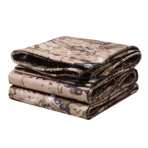 Bâche imperméable en Tissu avec Boucles renforcées - Protection UV résistante aux déchirures pour Camping, abri de Jardin, remorque de Meubles Camouflage 8 * 12m
