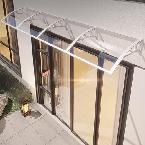 Zlovne Auvent de Porte Aluminium,Marquise de Porte d’Entrée en Polycarbonate Transparent,Auvent Marquise d'Entrée de Bloc UV de 99,99%,Terrasse Toit Abri Banne Protection (90x240cm/35 x94)