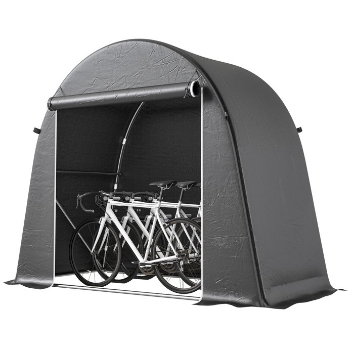 Outsunny Abri de jardin tente de stockage imperméable abri moto porte enroulable fermeture éclair, garage pour vélo et outils rangement et stockage pour vélo moto bois outils, 160x218x172cm gris foncé