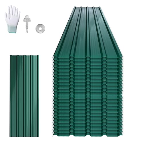 UISEBRT Lot de 24 tôles ondulées pour toiture en acier galvanisé 129,5x45 cm, tôle trapézoïdale profilée 14 m², galvanisée, tôles de toiture résistantes aux intempéries pour garage, abris de jardin
