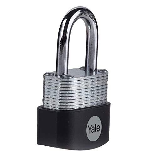 Yale Y221B/52/125/1 - Cadenas acier laminé protection thermoplastique 51 mm, anse protégée acier cémenté, 3 clés - Pour garage, portail, abris de jardin..., L.53mm x H.82mm , Noir