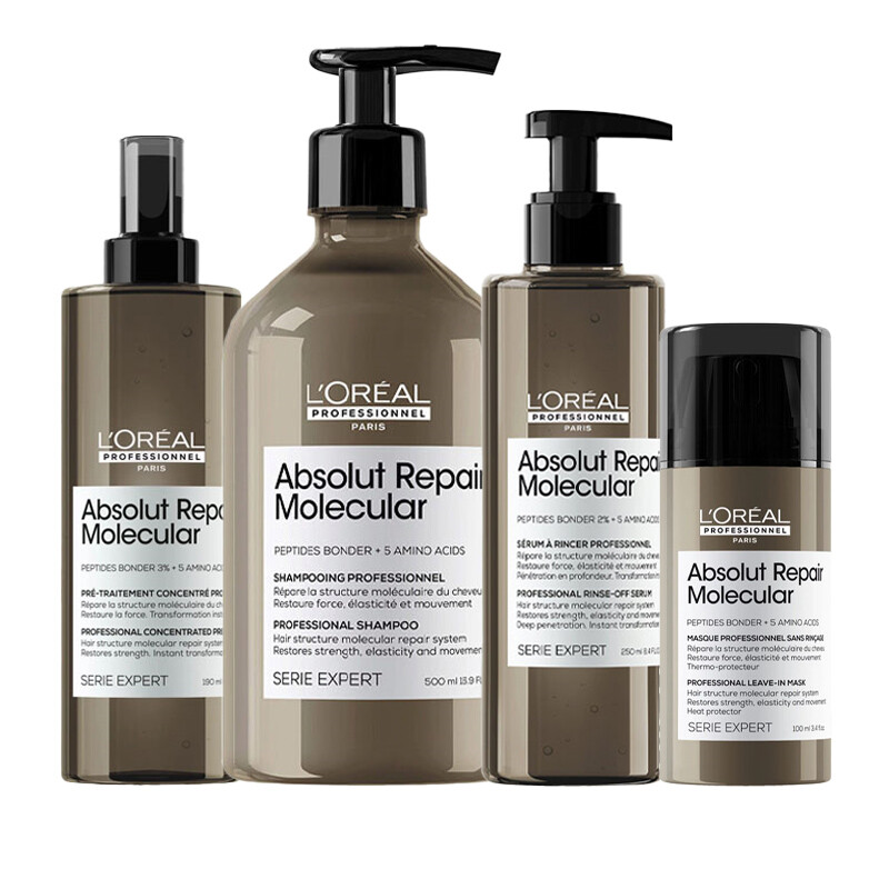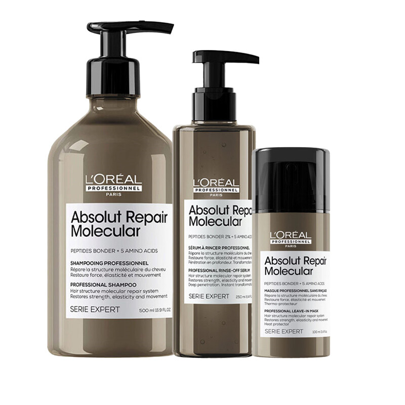 L'OREAL PROFESSIONNEL - Routine Pour Cheveux Très Abîmés - Absolut Repair Molecular - Répare & Adoucit - 3x + de Force & Trasformation Instantanée - Shampoing (300ml) + Masque (250ml) + Sérum (250ml)