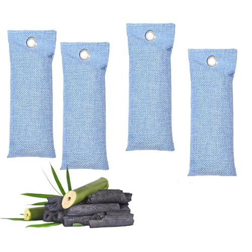 XinYangMao Lot de 4 Sacs Purificateur d'air au Charbon de Bambou 75g - Désodorisant Naturel & Absorbeur d'Humidité - pour Chaussures, Chaussures de Sport, Voiture, Placard, Salle de Bain, Maison