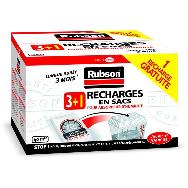 Lot de 3 recharges de 1 kg en sac pour absorbeur d'humidité + 1 recharge de 1 kg gratuite, Recharges anti-humidité et anti-odeur - Rubson