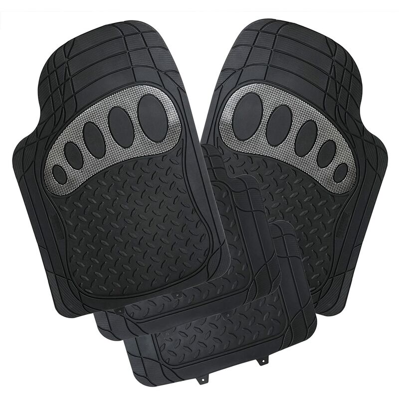 Woltu – Tapis de sol en caoutchouc découpable pour voiture – Antidérapant, facile à nettoyer – Noir Argent – Protection contre saleté et humidité