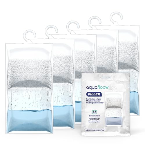 AquaFloow 5x210G Déshumidificateur suspendu, Absorbeur d'humidité pour placard, Déshumidificateur suspendu Anti-humidité, Sac déshydratant résistant à l'humidité