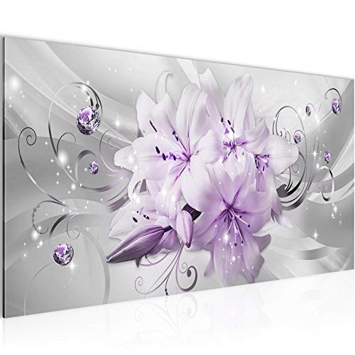 Runa Art Tableau Decoration Murale Lis Fleurs 1 Partie Moderne Toile non tissée Salon Salle Abstrait Violet Gris 019812b