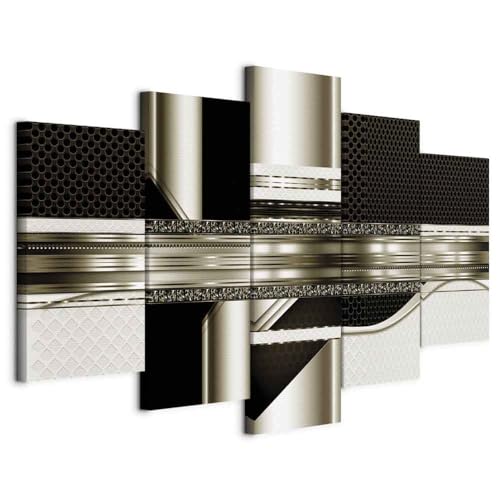 B&D XXL - Tableau décoratif abstrait 200x100 cm - Impression sur toile en noir et blanc - Décoration murale pour salon et chambre - Abstraction moderne rayures métalliques a-A-0184-b-o