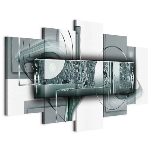 murando - Tableau décoratif abstrait 150x50 cm - Impression sur toile colorée - Décoration murale pour salon et chambre - Vert gris - Abstraction moderne argent vert ailes a-A-0344-b-b