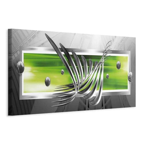 murando - Tableau décoratif abstrait 120x40 cm - Impression sur toile colorée - Décoration murale pour salon et chambre - Vert gris - Abstraction moderne argent vert ailes a-A-0344-b-b