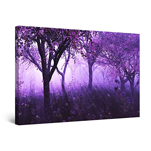 Startonight Impression Sur Toile Lumineux Forêt Violet Lumière Fantastique, Tableau Abstrait - Decoration Murale Salon Moderne - Image sur Toile - 60 x 90 cm Idée Cadeau Élégante et Originale