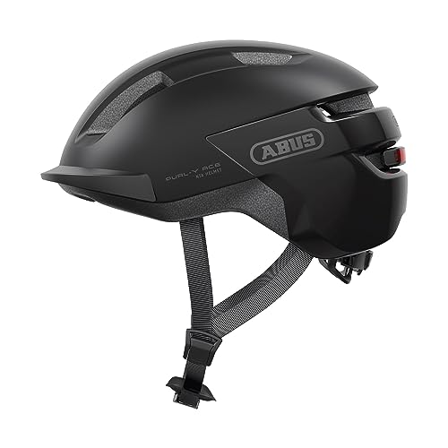 Casque de ville ABUS HUD-Y ACE - casque de vélo stylé avec visière et feu arrière LED magnétique et rechargeable - pour femmes et hommes - noir, taille S (51-55cm)