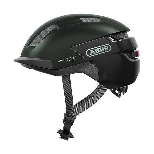 Casque de ville ABUS HUD-Y ACE - casque de vélo stylé avec visière et feu arrière LED magnétique et rechargeable - pour femmes et hommes - vert, taille L (57-61 cm)